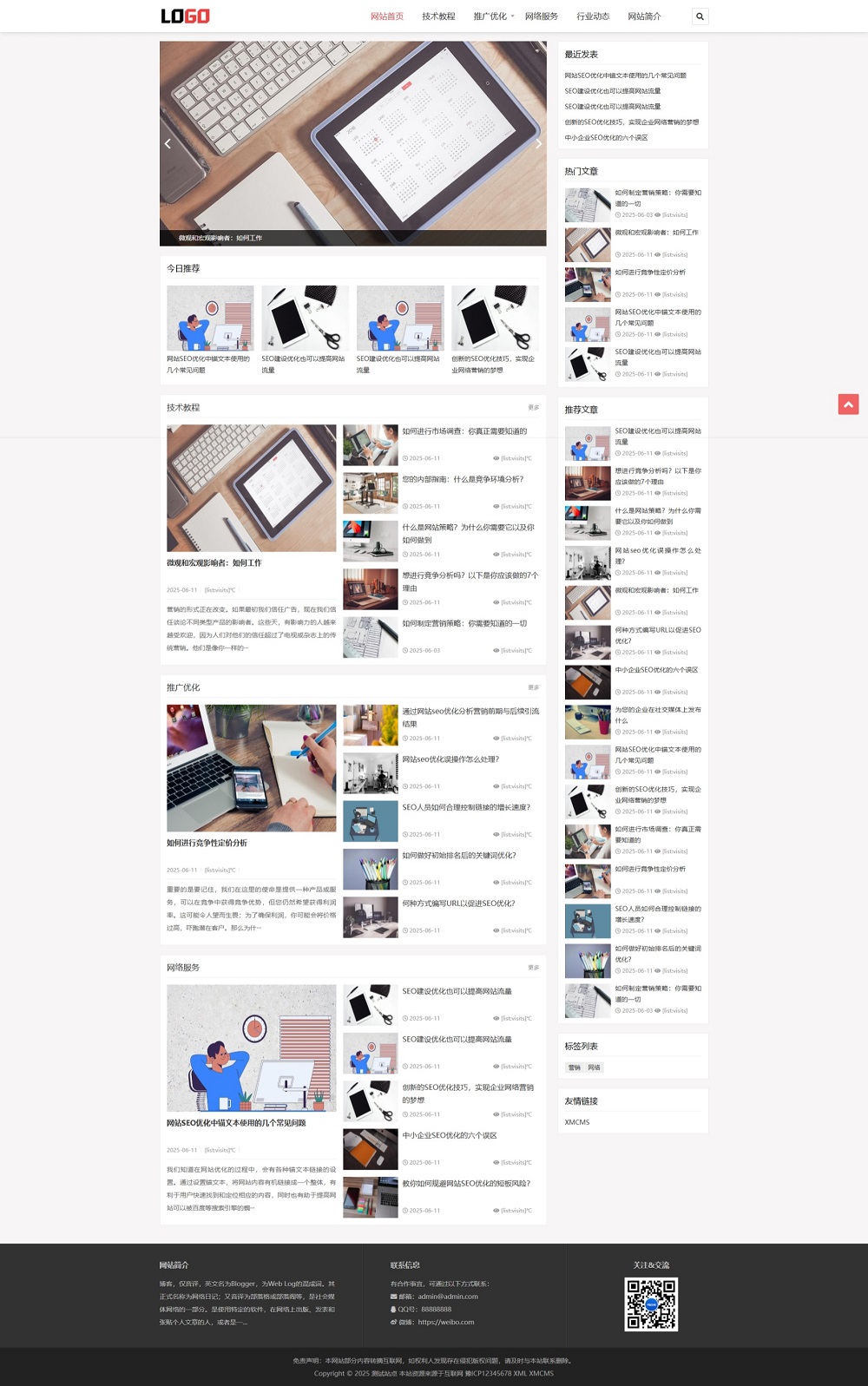 - SEO框架布局,栏目及文章页均可独立设置标题/关键词/描述。